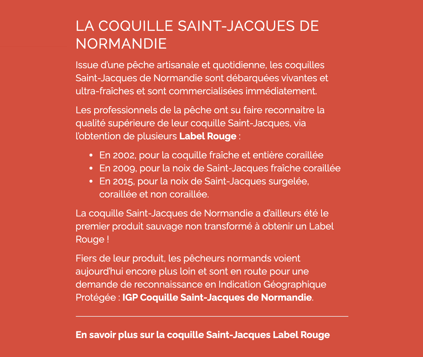 La coquille Saint-Jacques de Normandie a d’ailleurs été le premier produit sauvage non transformé à obtenir un Label Rouge !
