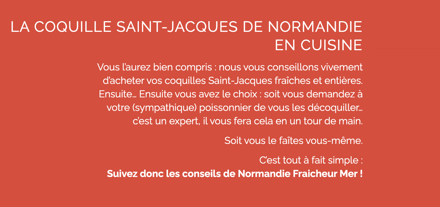 – Réclamer à votre poissonnier des coquilles Saint-Jacques de Normandie Label Rouge !